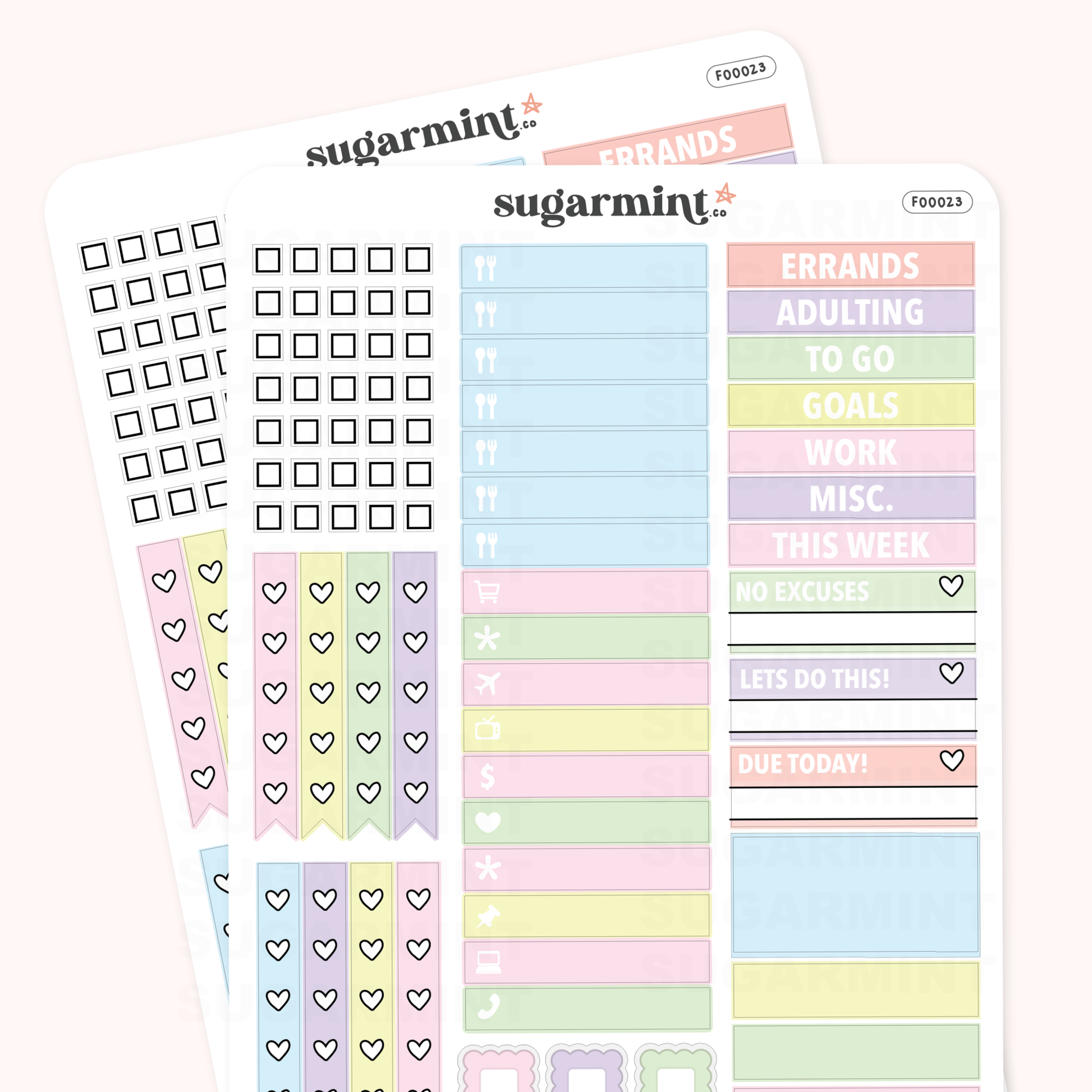 Printed on high-quality paper, this little things sticker sheet includes a variety of functional stickers, checklists, and checkboxes. The functional stickers include icons for tasks, appointments, and reminders, while the checklists and checkboxes are perfect for keeping track of important to-do lists and projects.