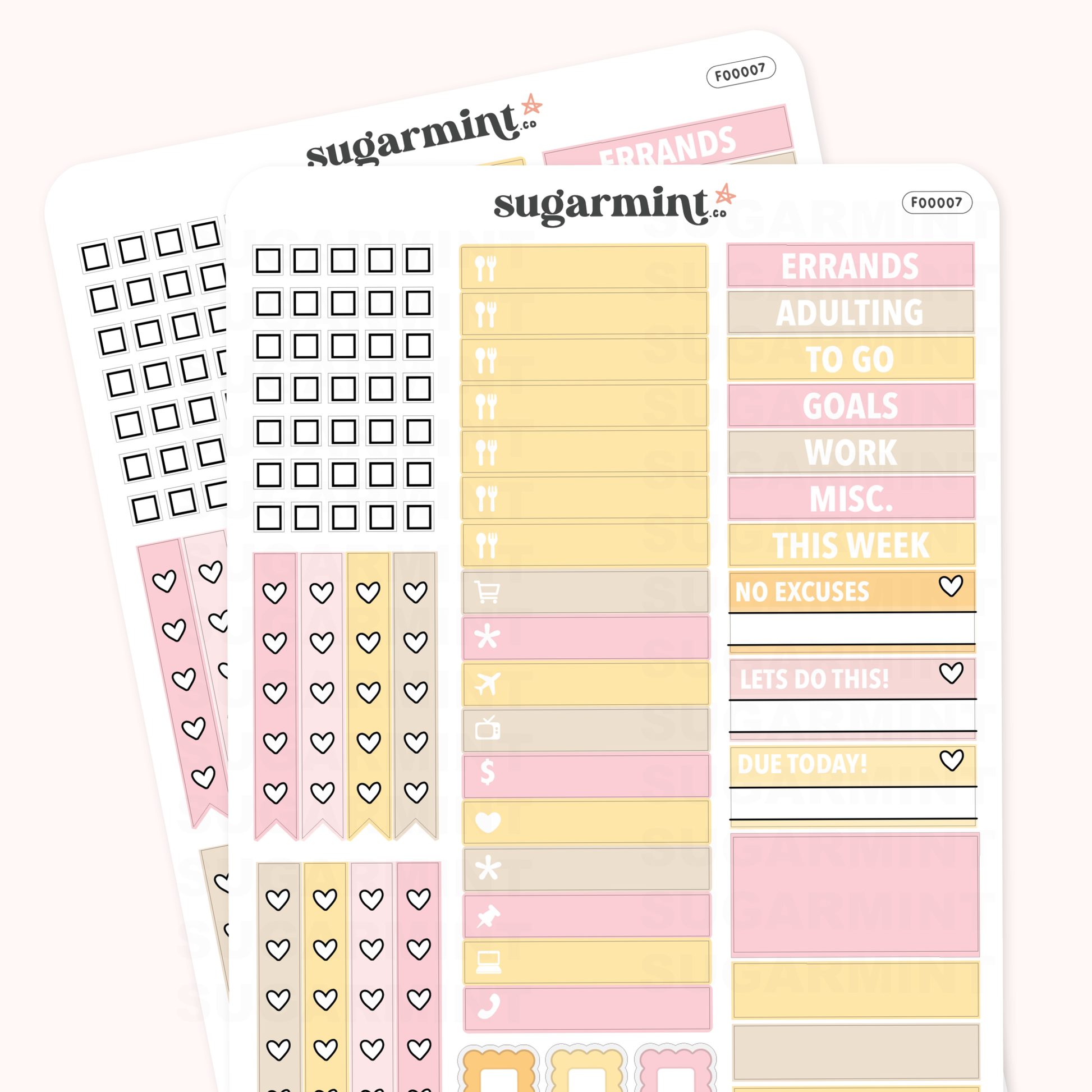 Whether you're a busy professional looking to stay organized or a creative journaler looking to add a touch of fun to your pages, this functional sticker sheet has everything you need. So why settle for plain and boring journal or planner pages when you can add a touch of personality and organization with these functional stickers, checklists, and checkboxes? Order now and get ready to take your planner or journal to the next level!