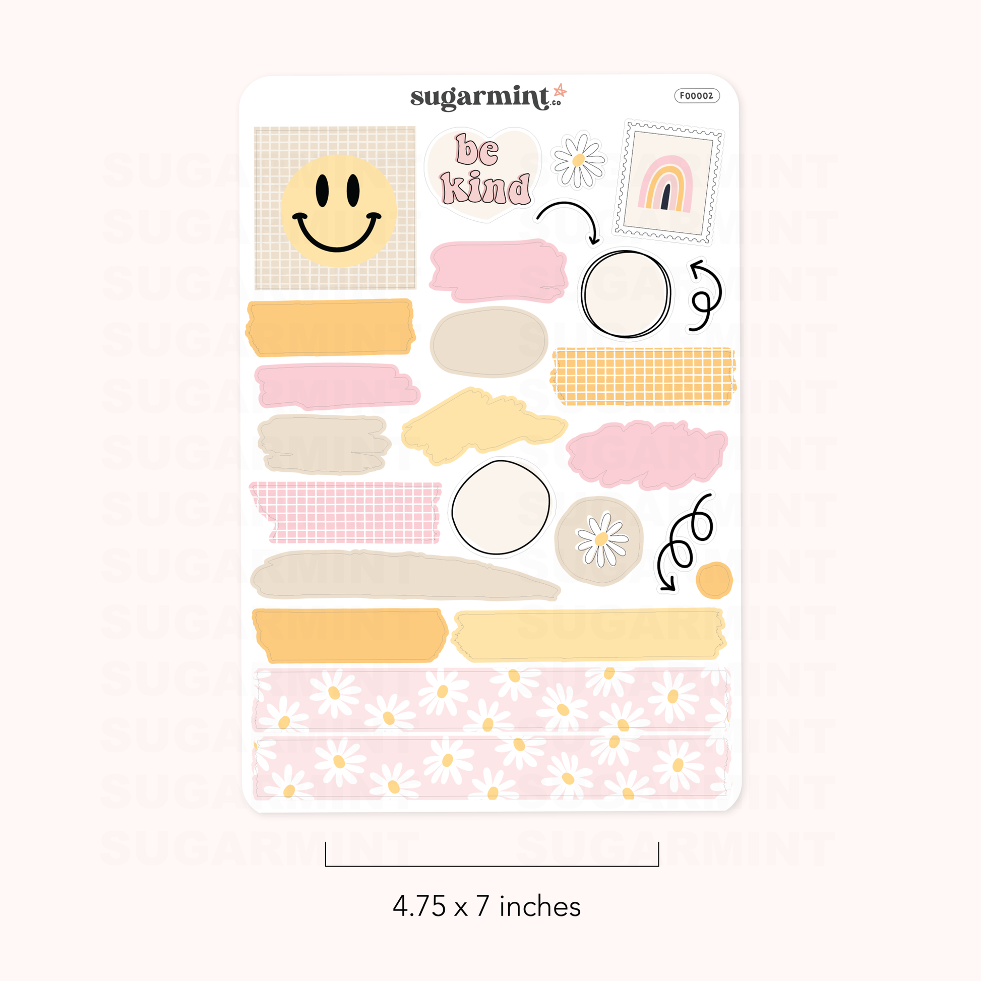 The designs are all coordinated with the "Be Kind" artwork, featuring smiley faces, flowers, and shades of pink and yellow that are sure to brighten up your day. With a variety of elements to choose from, you can mix and match to create a unique and personalized journaling experience.