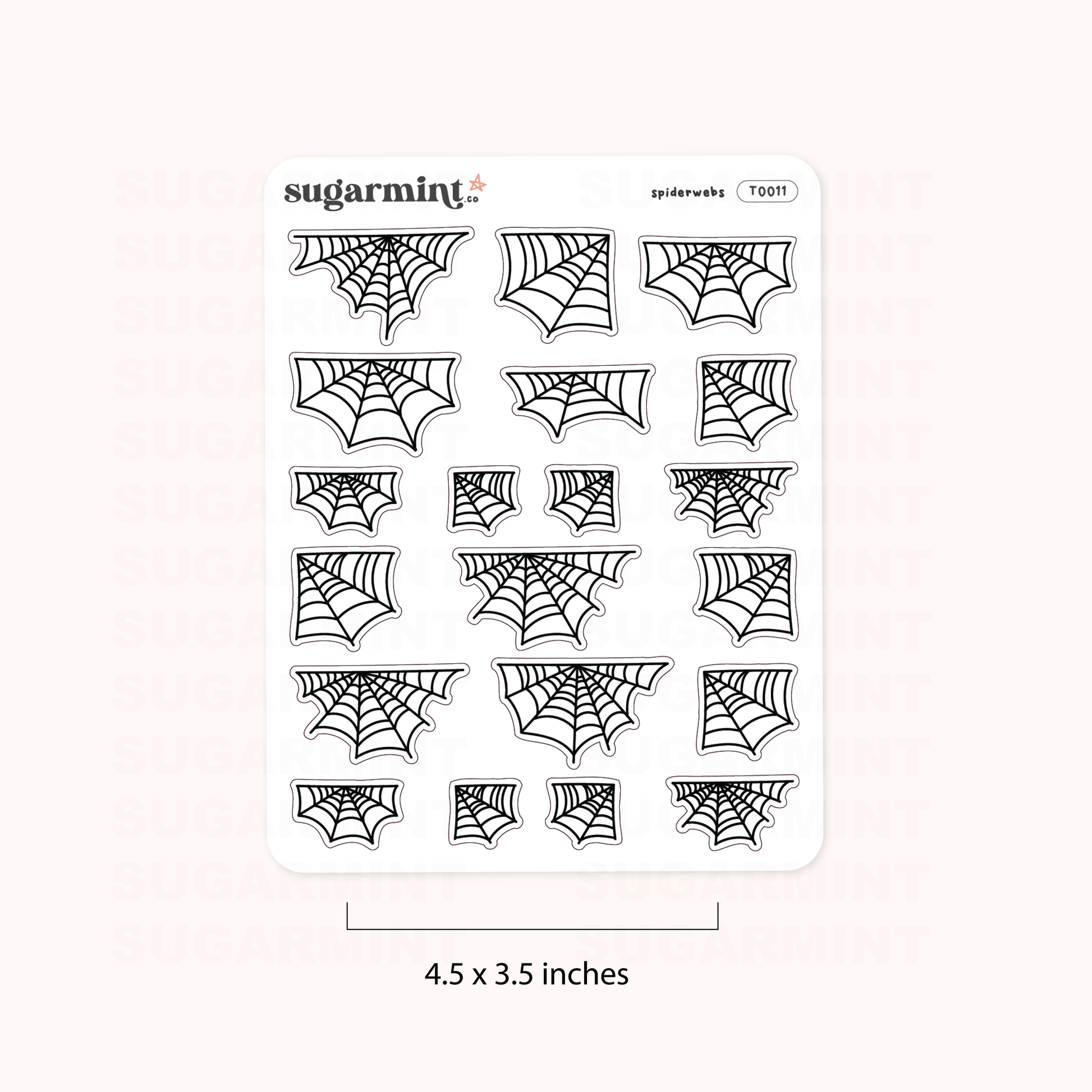 These spider web stickers will add a touch of spooky elegance to your planner spreads or Halloween-themed crafts. Printed on Clear Glossy Paper, this sheet of die-cut stickers features intricately designed spider webs in various sizes and styles, perfect for creating a spooky atmosphere. Add these stickers to your planner pages, bullet journal, or use them in scrapbooking and card-making projects to give them a creepy yet stylish touch.