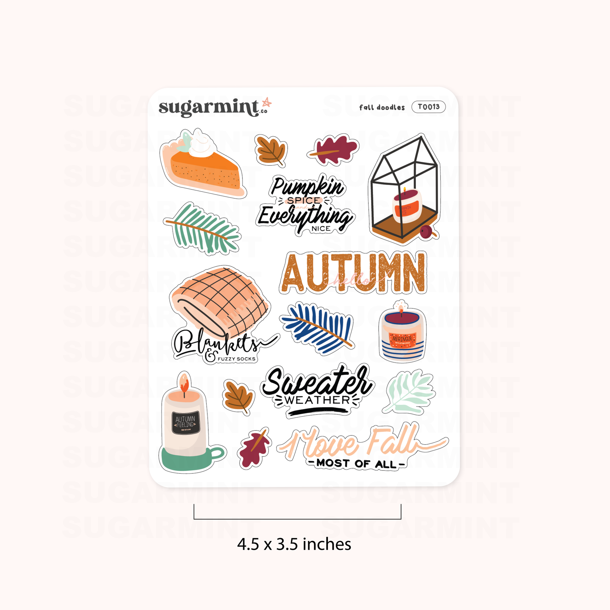 Introducing our new Fall Decorative Sticker Set! This set includes an array of autumn-themed stickers perfect for adding a touch of coziness to your planner or bullet journal. From adorable pumpkins to falling leaves and cozy scarves, these stickers are the perfect addition to any fall spread. Printed on matte sticker paper, these stickers are durable and long-lasting. Get into the fall spirit and decorate your planner with this beautiful set today!