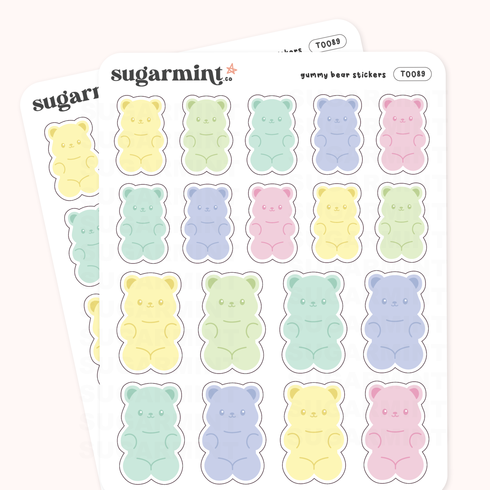These pastel gummy bear inspired doodle stickers are the perfect addition to any journal or planner. Featuring cute and playful doodles, they're sure to add a touch of fun to your daily routine. Each sticker sheet measures 3.5 x 4.5 inches and is printed on matte sticker paper, making them easy to apply and durable.