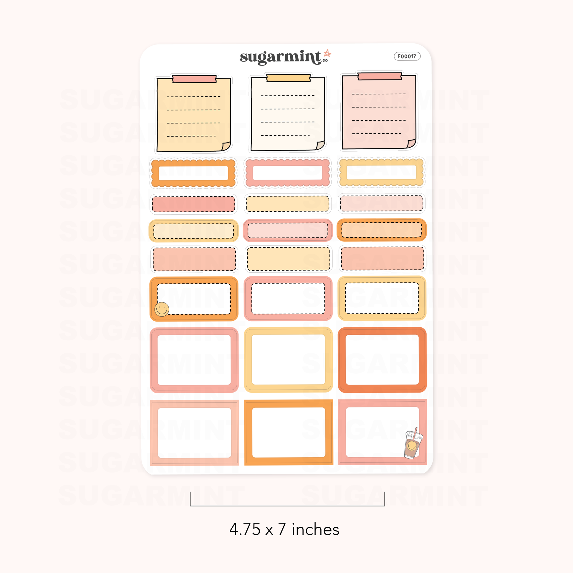 Printed on high-quality paper, this sticker sheet includes a variety of decorative boxes in different sizes and shapes, all coordinated with the cute and colorful "It's a Good Day" artwork. The boxes are perfect for organizing your tasks, appointments, or important notes, and can be used to add some visual interest to your journal or planner pages.