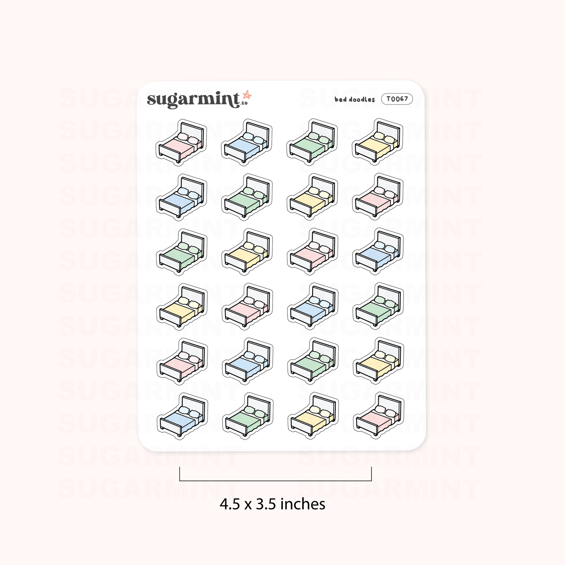 Measuring 3.5 x 4.5 inches, each sticker sheet is a convenient size for on-the-go planning. Whether you're using them to decorate your planner or to add some personality to your journal, these bed doodle stickers are sure to bring a smile to your face.