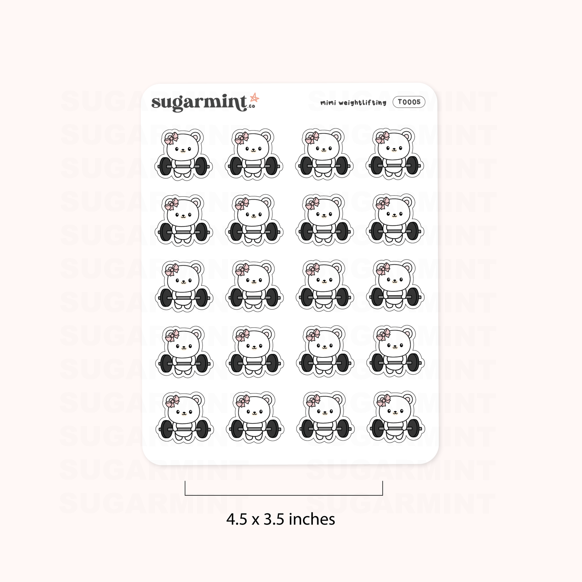Get motivated to crush your fitness goals with our Mimi weightlifting planner stickers! This sticker sheet features adorable illustrations of Mimi lifting weights with various expressions to match your mood. Use them to track your workouts, set reminders for gym days, or just add some cute and fun flair to your planner pages. Stay inspired and stay on track with Mimi by your side!