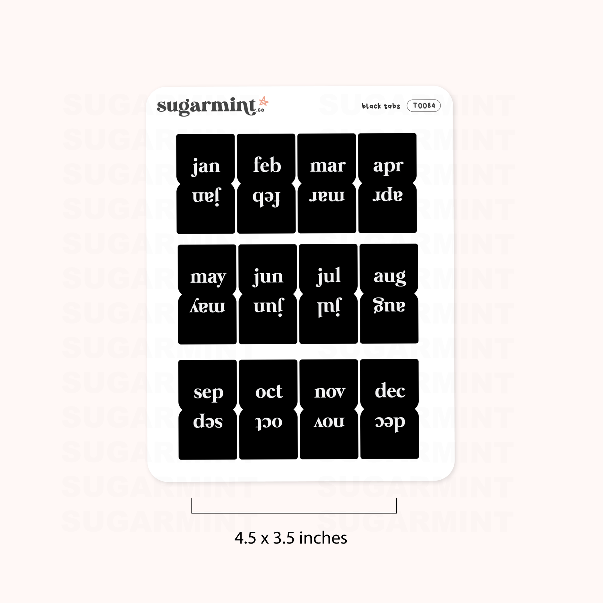 This sticker sheet is the perfect addition to any bullet journal or undated planner. With 12 monthly tabs included, you'll be able to keep your planner organized and on track throughout the year. Each sticker sheet measures 3.5 x 4.5 inches and is printed on matte sticker paper, making it durable and easy to apply.