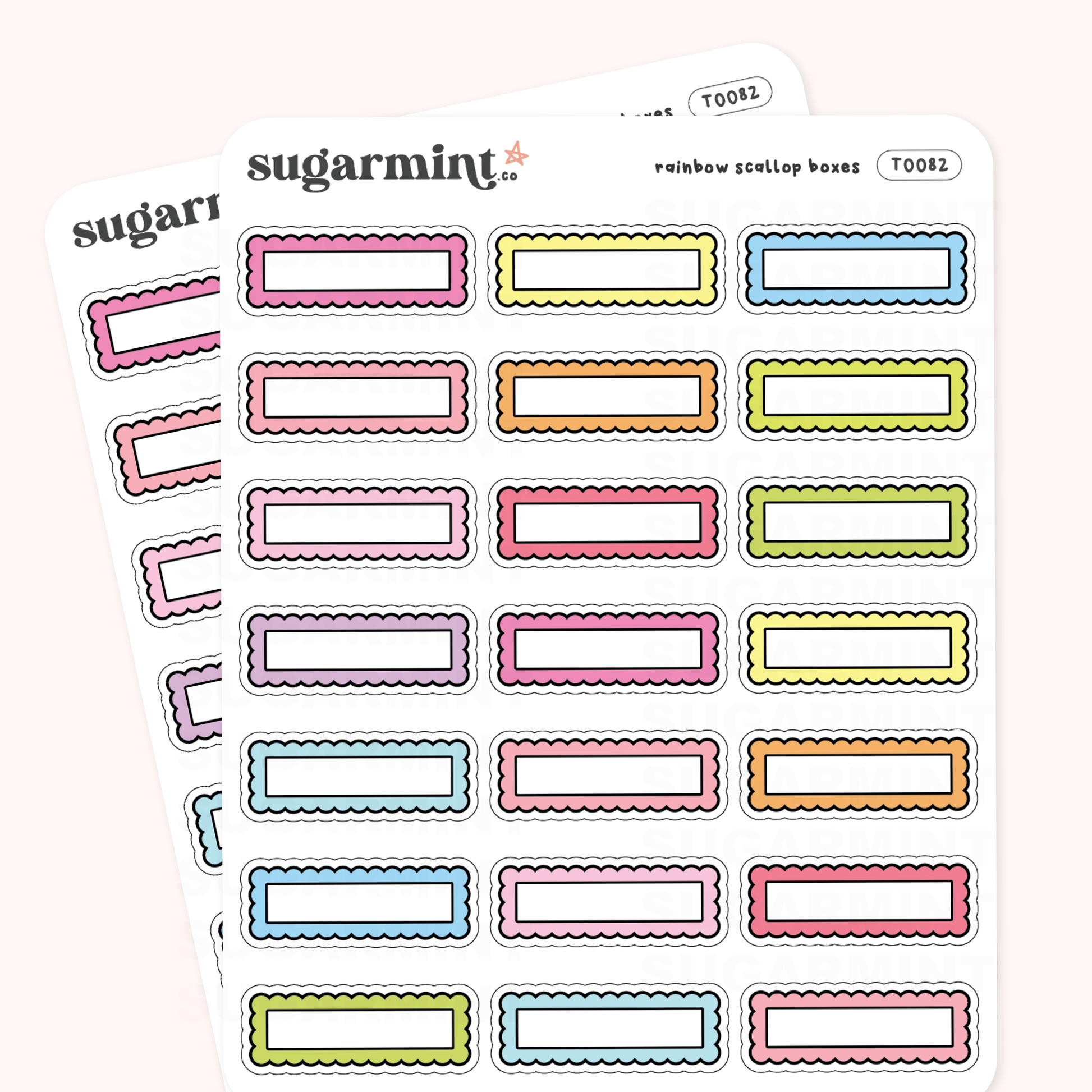 These scalloped box stickers are a fun and functional addition to any planner or journal. With cute doodles, they're perfect for writing appointments and other reminders. Each sticker sheet measures 3.5 x 4.5 inches and is printed on matte sticker paper, making them easy to apply and durable. Whether you're using them to organize your schedule or simply to add some fun to your planner, these stickers are a great choice.