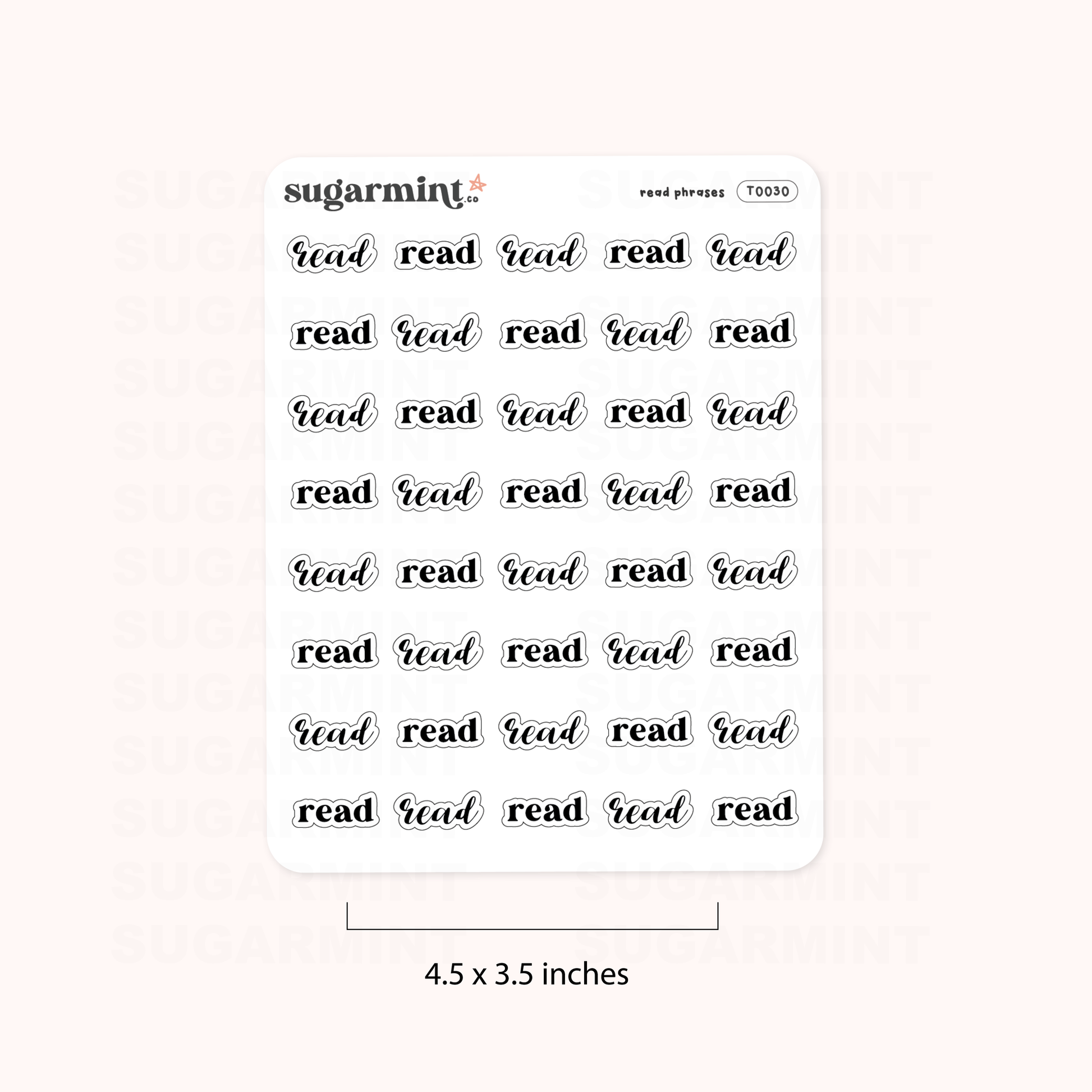 These black 'Read' script stickers are perfect for book lovers and anyone who enjoys reading. Printed on matte sticker paper, they're durable and easy to apply. Use them to mark your reading time or simply to add some fun to your planner. With their sleek and simple design, these stickers are a versatile and practical choice for any planner.