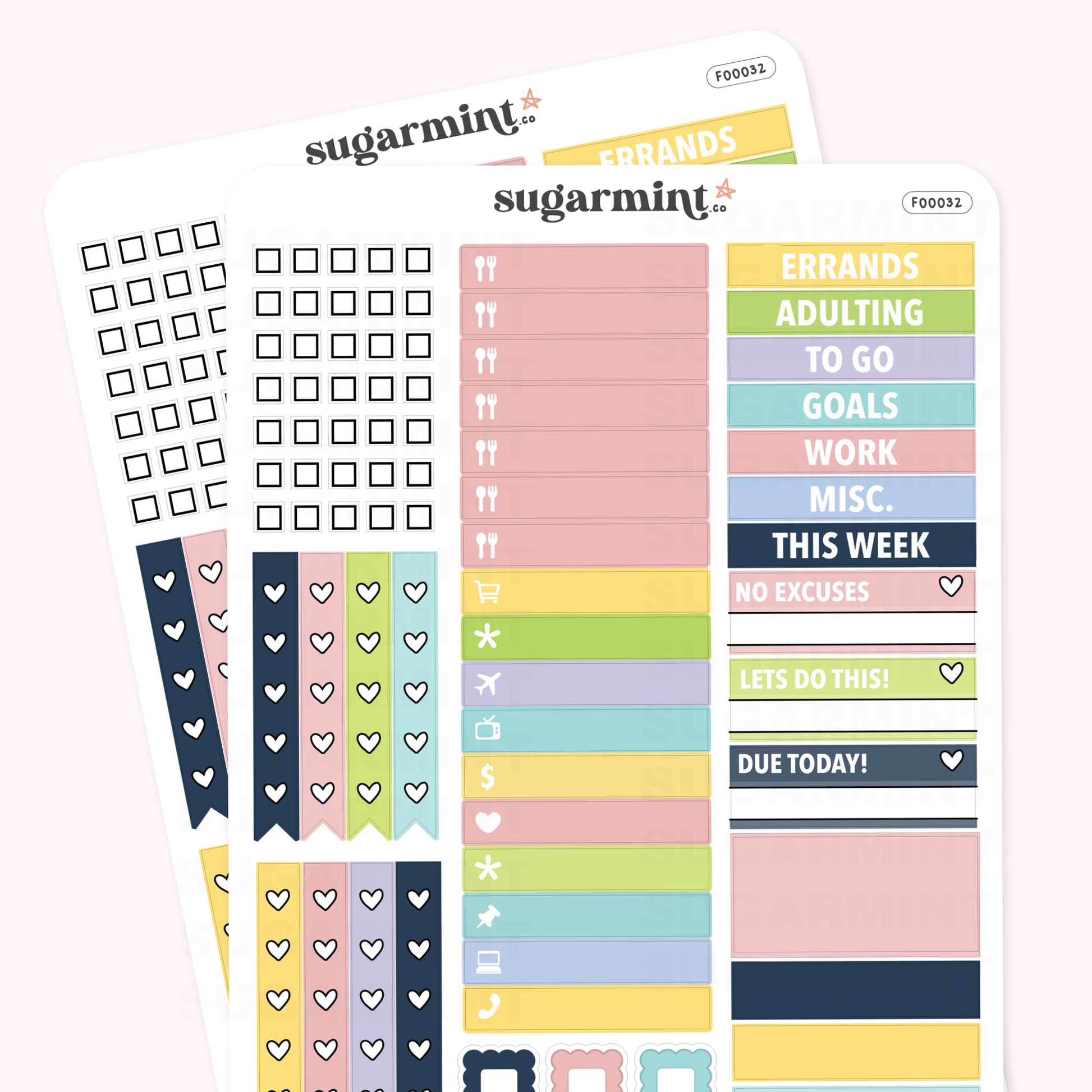 Printed on high-quality paper, this little things sticker sheet includes a variety of functional stickers, checklists, and checkboxes. The functional stickers include icons for tasks, appointments, and reminders, while the checklists and checkboxes are perfect for keeping track of important to-do lists and projects.
