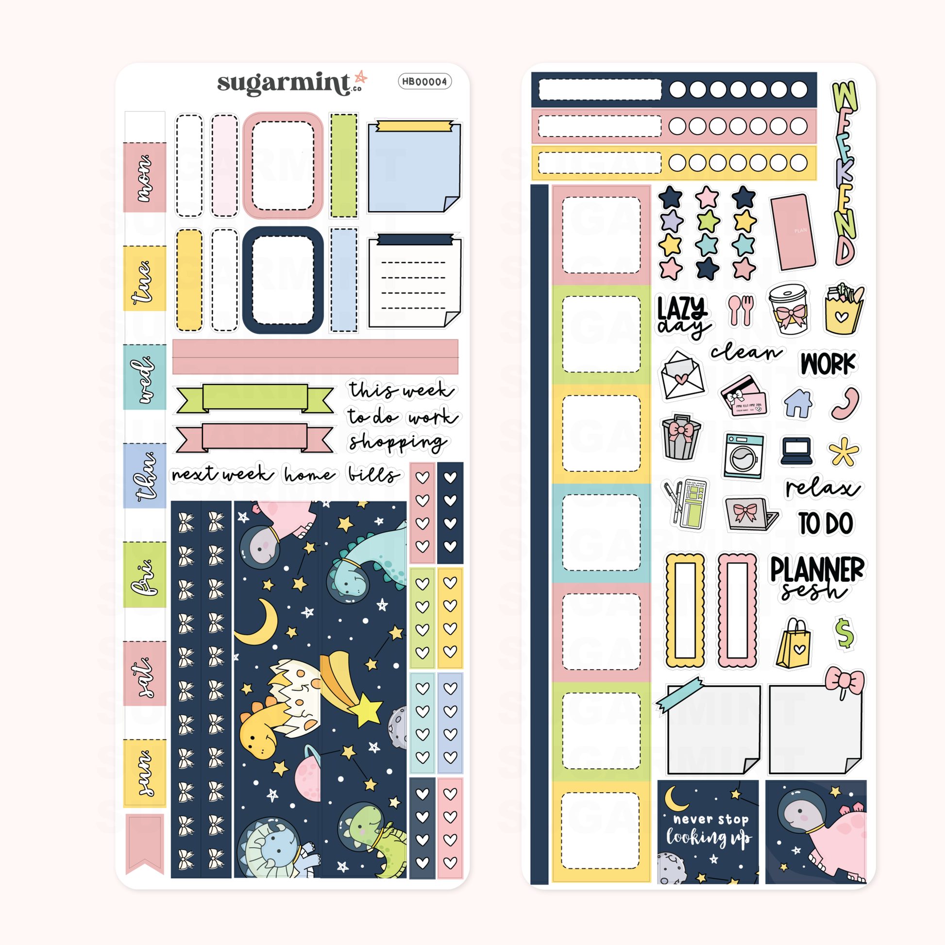 Add some out-of-this-world fun to your planning with our Space Dinos Hobonichi Weeks Planner Sticker Kit! This 2-page kit includes adorable dinosaur and space-themed stickers in dreamy pastel colors. Get ready to blast off and organize your days in a cute and kawaii way!