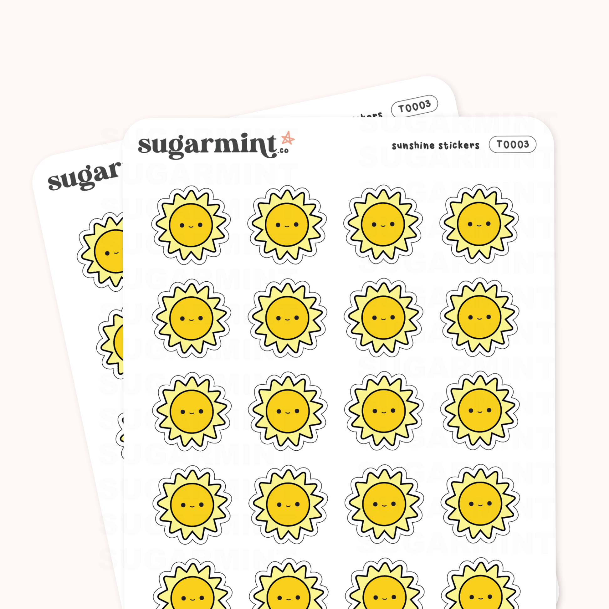 Add a little sunshine to your planner or bullet journal with these adorable sun stickers! Perfect for tracking the weather, beach days, or any other sunny occasion, these stickers will brighten up your day. You can use them to mark special events, highlight important dates, or simply add some extra warmth to your pages. Each sticker features a happy, smiling sun that's sure to bring a smile to your face. So go ahead - soak up the sun and let these stickers be your guide!