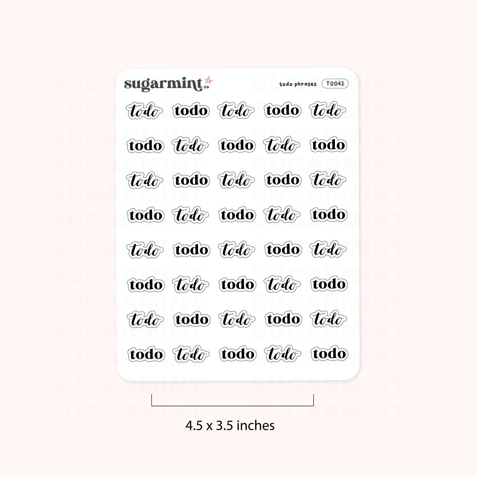 These black 'To-Do' script stickers are a practical addition to any planner. Printed on matte sticker paper, they're durable and easy to apply. Use them to mark your daily tasks or simply to stay organized. Each sticker sheet measures 3.5 x 4.5 inches, making them the perfect size for any planner. With their sleek and simple design, these stickers are a practical and stylish choice for any planner.